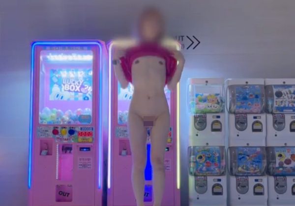 ゲーセンの片隅で露出自撮りする女の子がマンコまでクパァしちゃってます